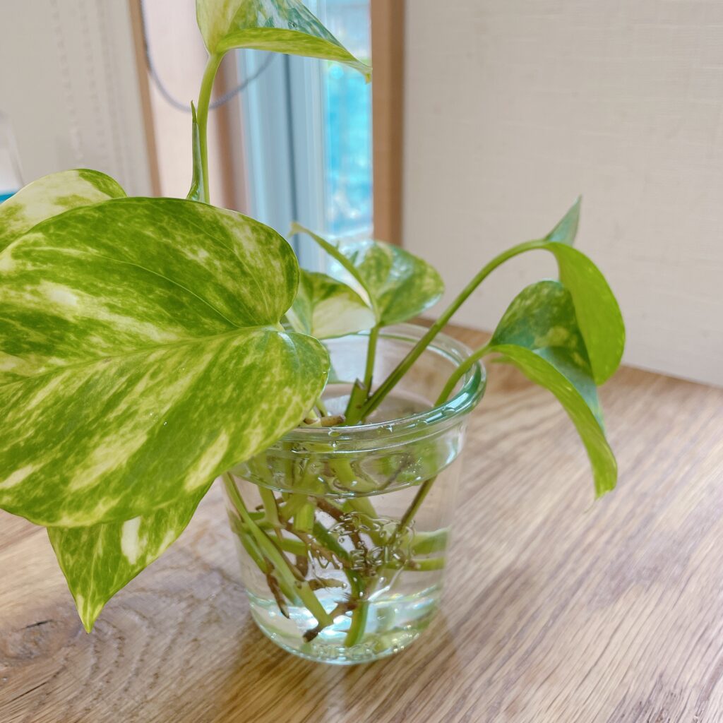 そういえば、その昔、看護部長の部屋に行くと、あちこちポトスが水に挿してあったなってのを思い出して、Youtubeで調べてみたら…なんとも簡単にできるではありませんか!!