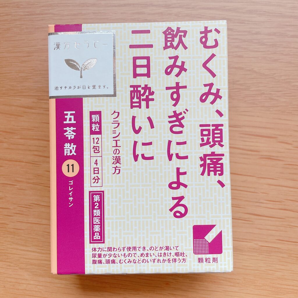 そのあと、ツイッターで、気候病(気候によっておこる不調、頭痛やめまいなど)には、五苓散という漢方がいいって見て、さっそく買ってみました!