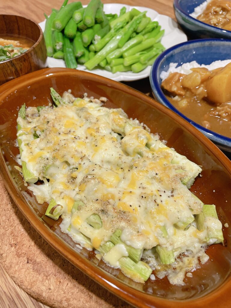 ★アスパラ→マヨネーズ→ガーっと粉ふりかけ→チーズ→黒コショウ